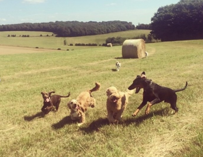 We explore woodlands and open fields to meet your dog’s mental and physical needs.